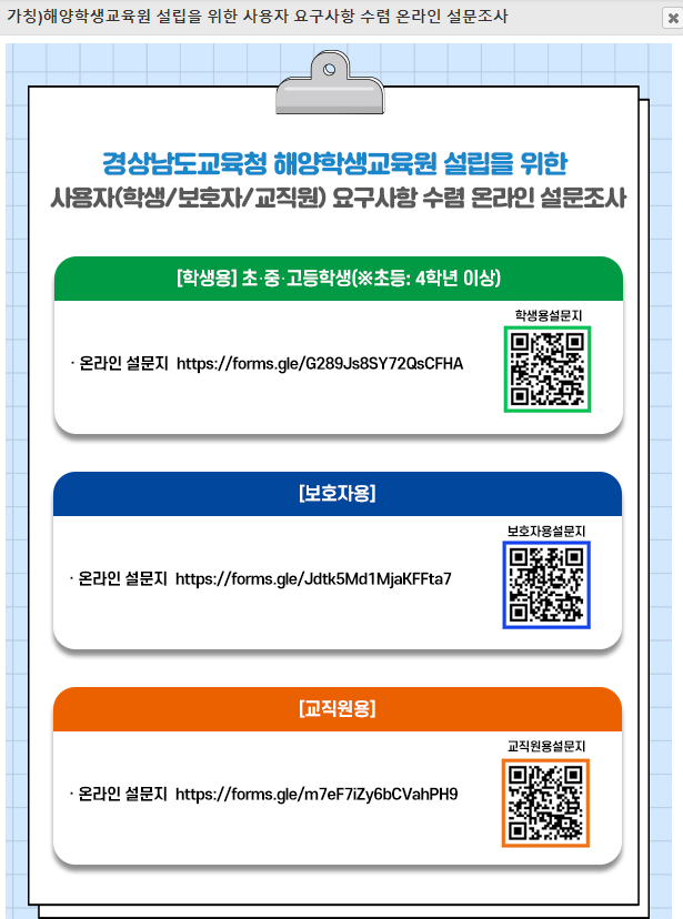 - 해양학생교육원의 운영 및 기타 관련 조사대상 별 20~22문항(약 5분 소요)